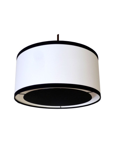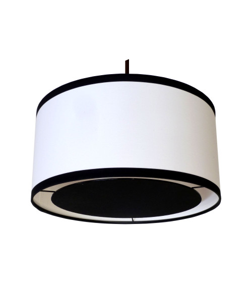 Conçue et fabriquée en France, cette suspension de grande taille et à l'allure raffinée et intemporelle séduit par son design sobre et contemporain. Cette suspension cylindrique est revêtue d’un tissu en coton blanc mis en valeur par un liseré noir discret qui souligne ses lignes épurées.
